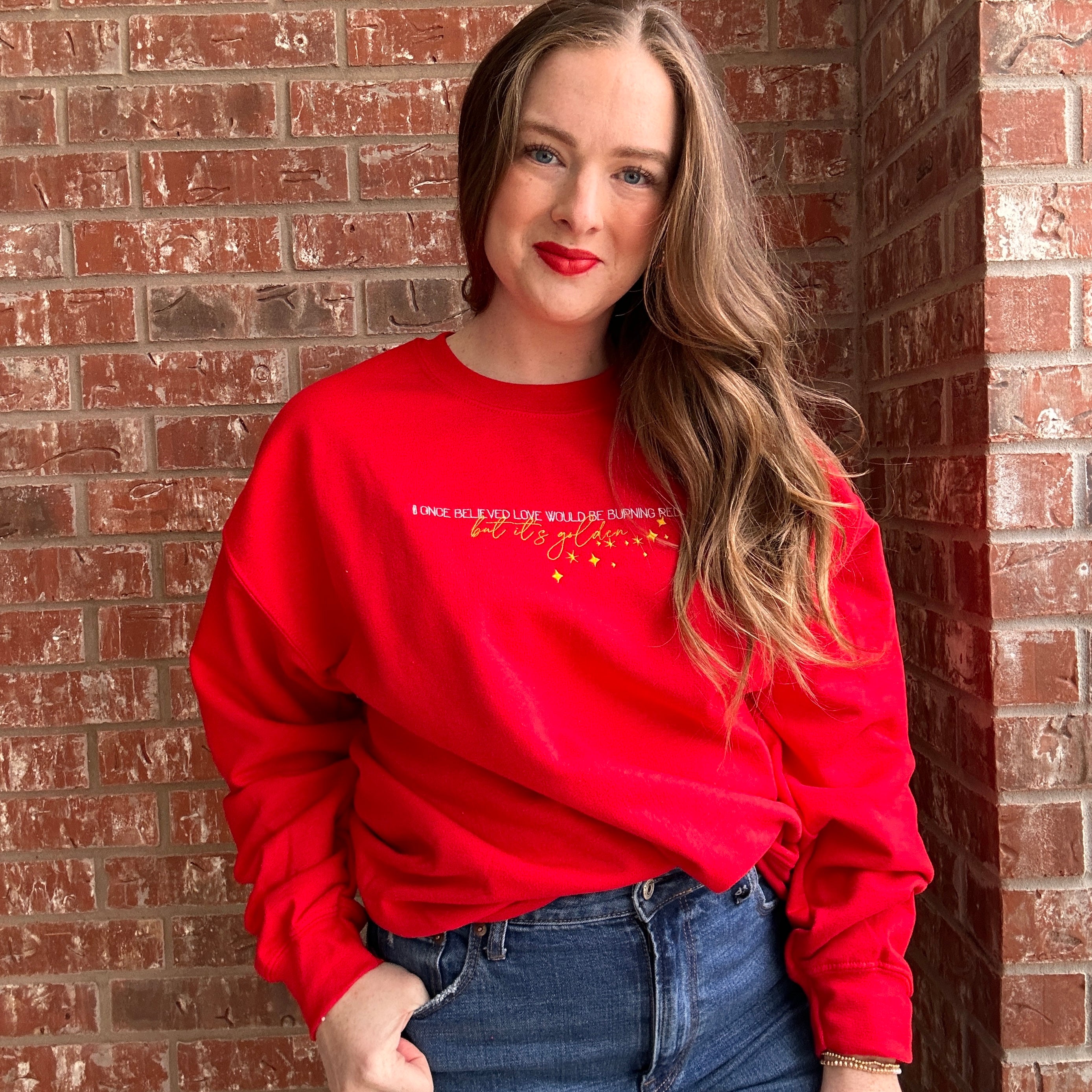 But It's Golden on Red Heavy Blend Sweatshirt | Gildan Heavy Blend Crewneck Sweatshirt